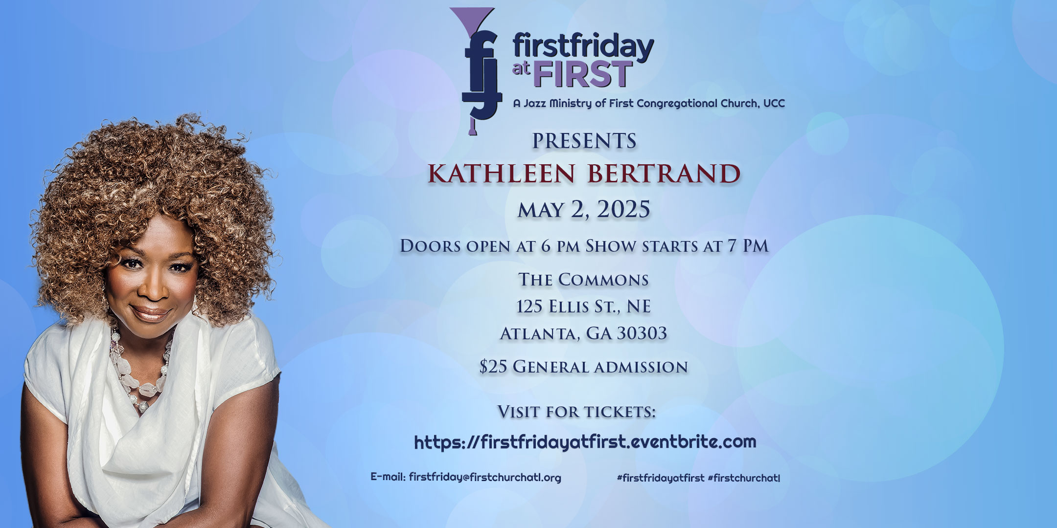 No stranger to First Friday and a friend to First Congregational Church, the renowned jazz vocalist has sold out every time she has graced our stage. She is an award-winning vocalist who has performed for presidents, mayoral inaugurations, multiple appearances at the Atlanta Jazz Festival, and international festivals. A native of Atlanta, she graduated from Spelman College, spent over 30 years of service in the City of Atlanta, and is a co-founder and Executive Producer of the Bronze Lens Festival. Bertrand is a true Atlanta treasure.