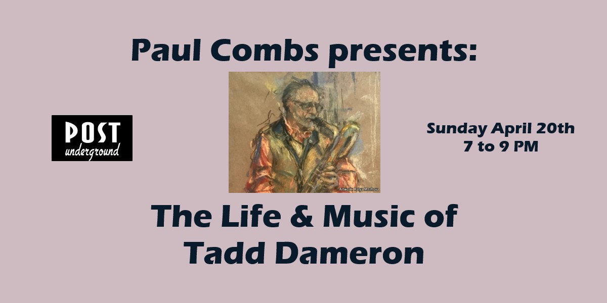 The POSTunderground is just beginning to book Sunday events, and this trail has yet to be blazed, but we are igniting the concept with a special show on Sunday April 20th, 7 to 9 PM, when saxophonist and Tadd Dameron biographer Paul Combs will present Dameron's music and talk about the composer/pianist's life and influence.