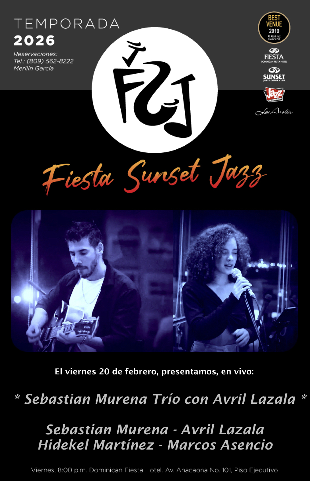 Dominican Republic » Calendar » Sebastian Murena Trío con Avril Lazala at Fiesta Sunset Jazz