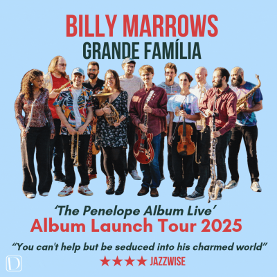 This gig is a rare chance to hear Billy Marrows and his chamber jazz group Grande Família play music from their critically acclaimed debut album ‘Penelope’. Recorded as a surprise for Billy’s mother Penny during her struggle with pancreatic cancer in summer 2023, it was released in her memory in January 2024. It features the group as a 12-piece ensemble and in smaller combinations, interspersed with intimate solo guitar vignettes. Their inventive contemporary jazz spans a wide emotional spectrum, with strong narrative and melodic solos and compositions at its heart. This melodic narrative shapes a beautiful evening of original music, not to be missed!...