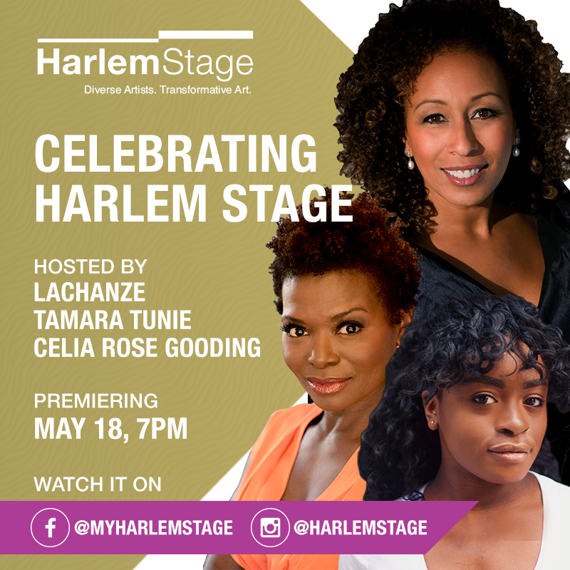Celebrating Harlem Stage will be hosted by award-winning Broadway, television and film actor, LaChanze, producer, director, and award-winning actor, Tamara Tunie, and award-nominated, rising Broadway actor, Celia Rose Gooding. Hosts and Harlem Stage will be responding to live comments throughout the event.