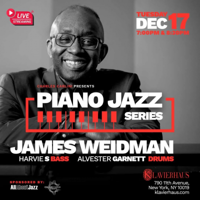 Don’t miss a night of incredible jazz piano! Acclaimed pianist James Weidman takes the stage at Klavierhaus on Tuesday, December 17th, along with his talented trio featuring Harvie S on bass and Alvester Garnett on drums.