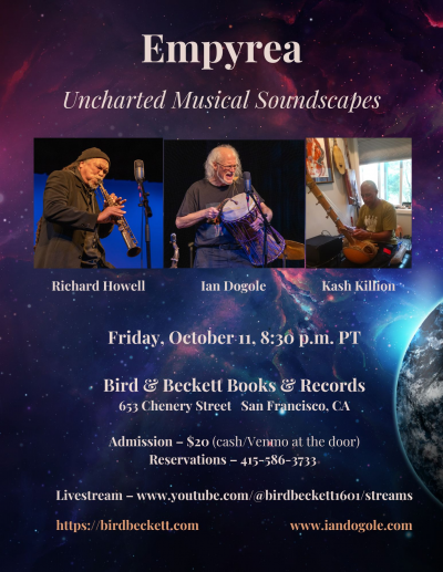 Empyrea travels the spaceways with thrilling improvisational forays that venture into uncharted sonic terrain. Listeners will experience instrumental combinations rarely heard on this planet.