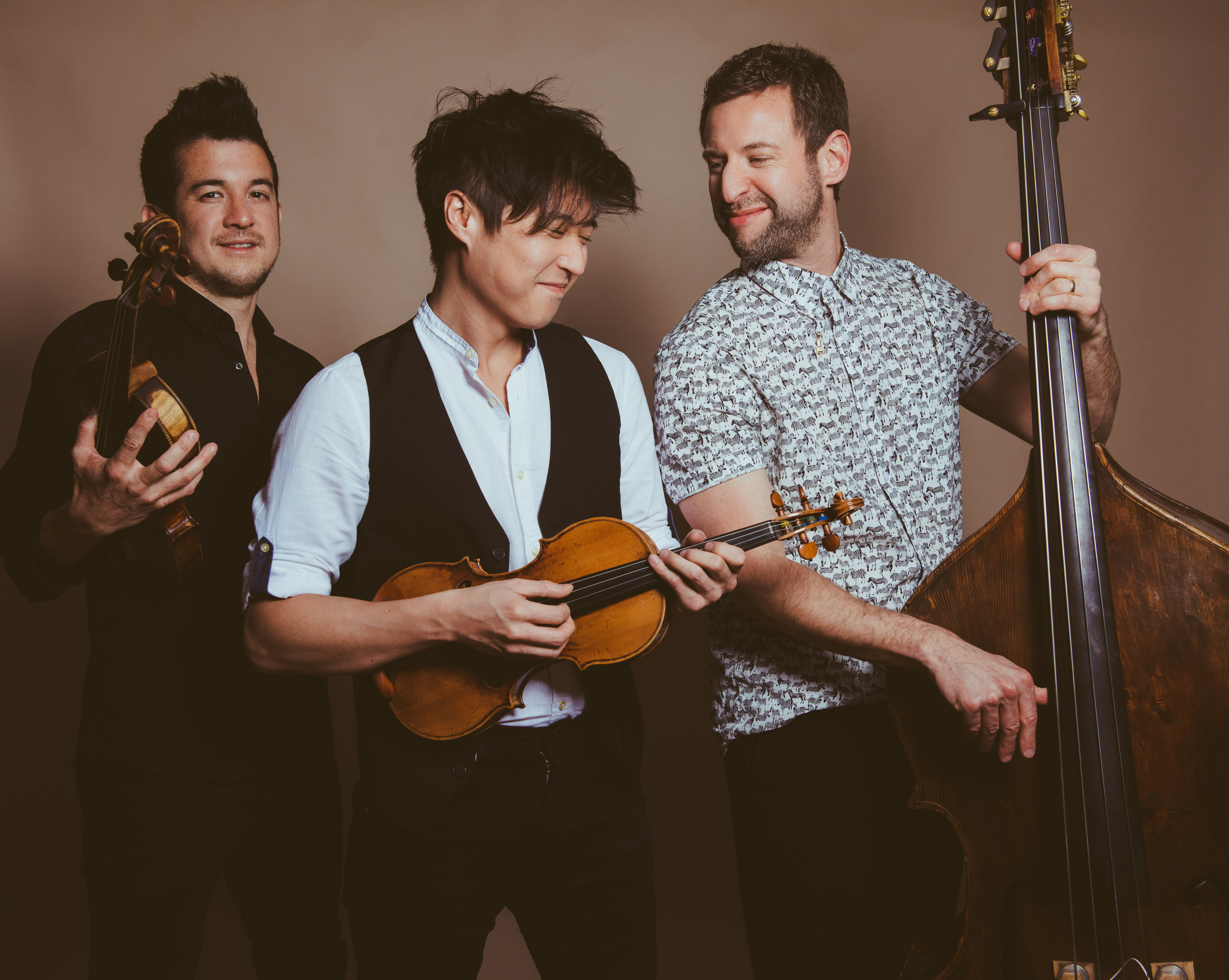Defying convention and boundaries, Time For Three stands at the busy intersection of Americana, modern pop, and classical music. To experience Time For Three (TF3) live is to hear the various eras, styles, and traditions of Western music fold in on themselves and emerge anew. Bonded by an uncommon blend of their instruments fused together with their voices, Charles Yang (violin, vocals), Nicolas “Nick” Kendall (violin, vocals), and Ranaan Meyer (double bass, vocals), have found a unique voice of expression to share with the world.