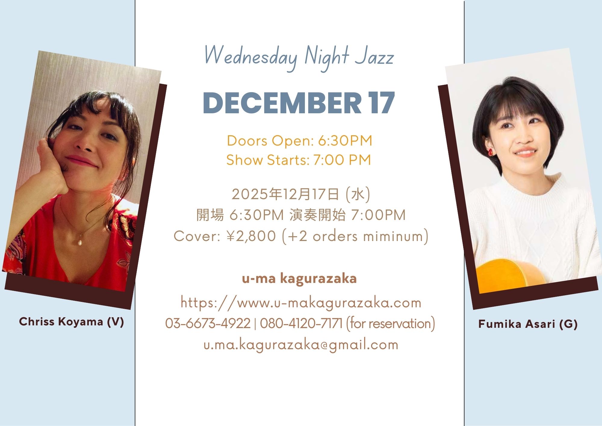 Tokyo » Calendar » Chriss Koyama & Fumika Asari at U-ma Kagurazaka